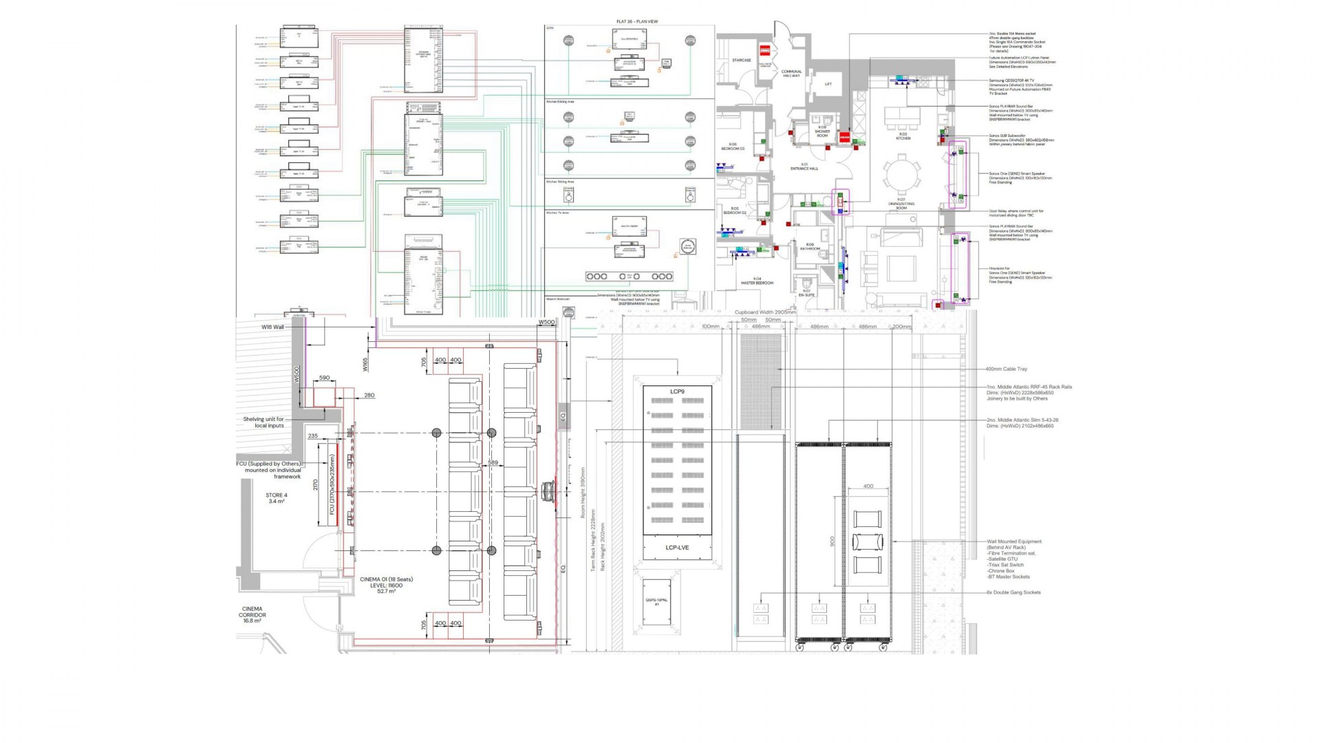 Working with all stakeholders involved, we design and deliver best-in-class smart home technology solutions for every Cornflake client. While our in-house documentation teams ensure a level of service and detail that is unsurpassed, whether that is shown on a 2D paper space or within a 3D render. This enables us to elevate and evolve not only your personalised Cornflake system, but allows it to seamlessly work alongside all design professions and aesthetic choices at the earliest stage.