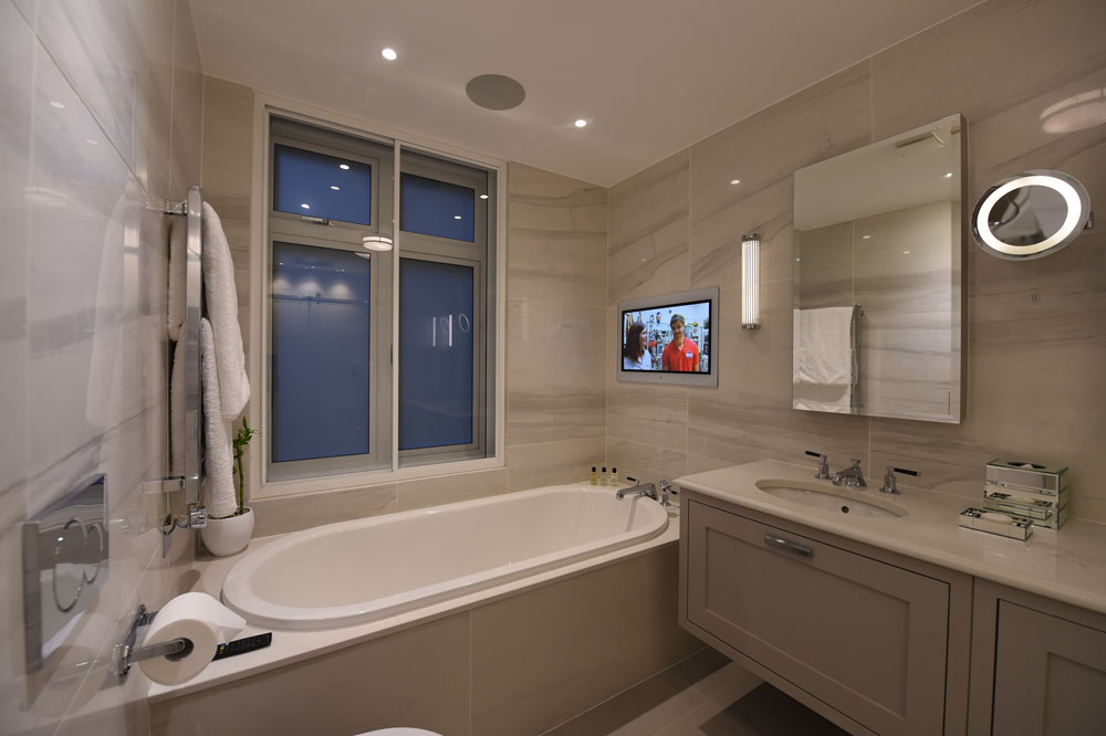 Our task was to design and implement a solution, which allowed for a very broad spectrum of TV services coupled with the minimum amount of technology installed in each apartment. This required the thorough development of a centralised distribution option, powered by enterprise-grade infrastructure. We also sourced and supplied multi-room audio, together with Aquavision TVs for the bathrooms.
