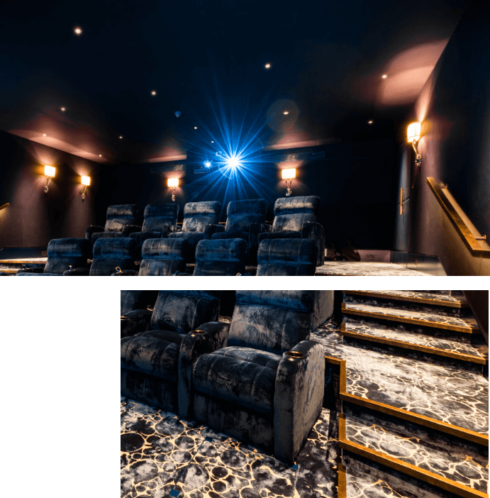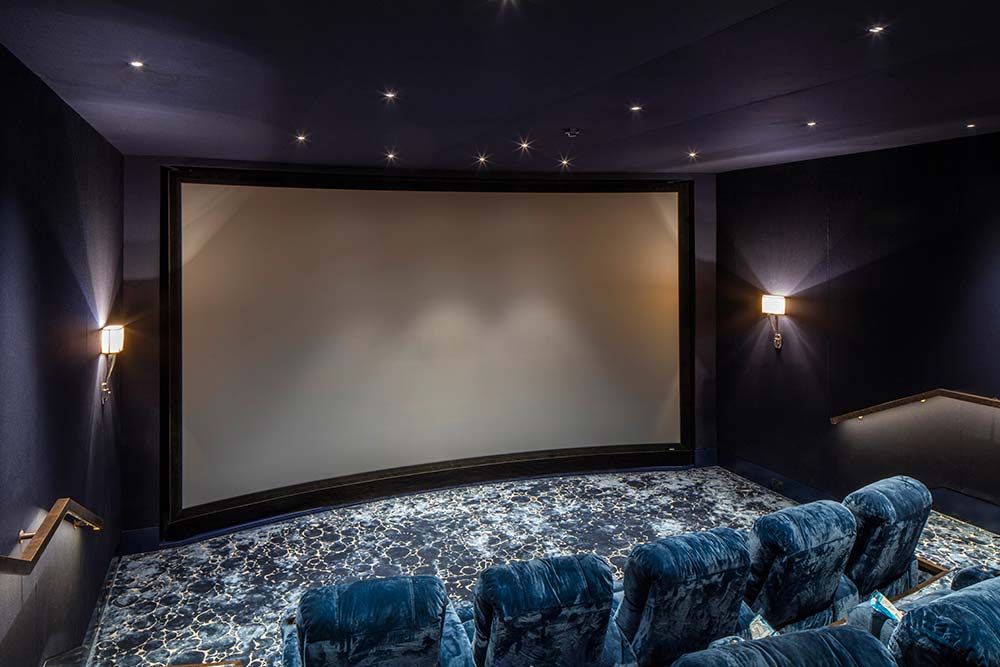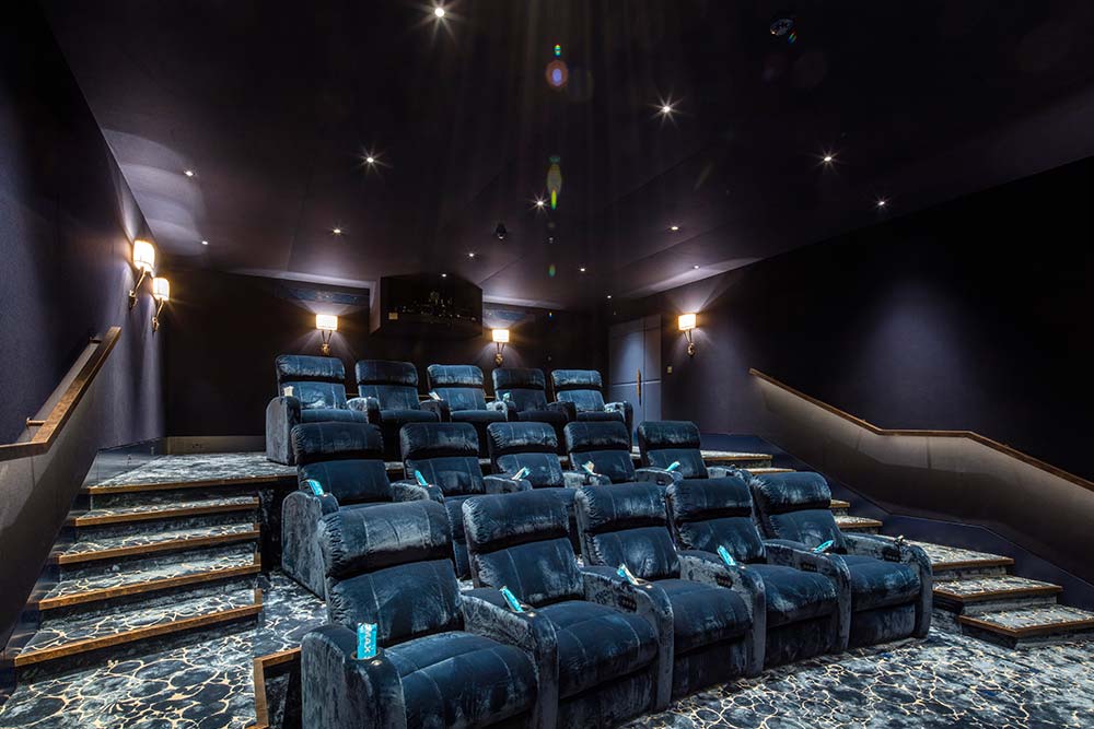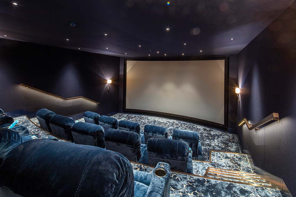 Very early on in the design stage, the dedicated space for the cinema was formed with a blueprint, allowing for additional excavation work to accommodate the multiple rows of seating, together with a full height and width IMAX projector screen.