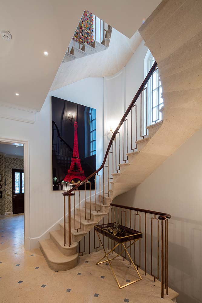 Another unique element was the installation of a piece of digital art in the main residence consisting of four portrait screens for which we designed a bespoke picture frame surround to discreetly conceal cabling and brackets.